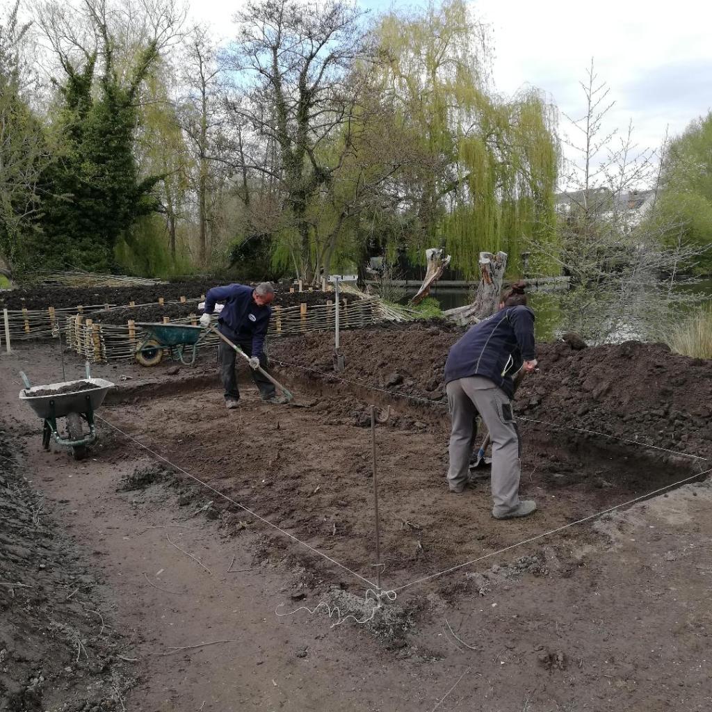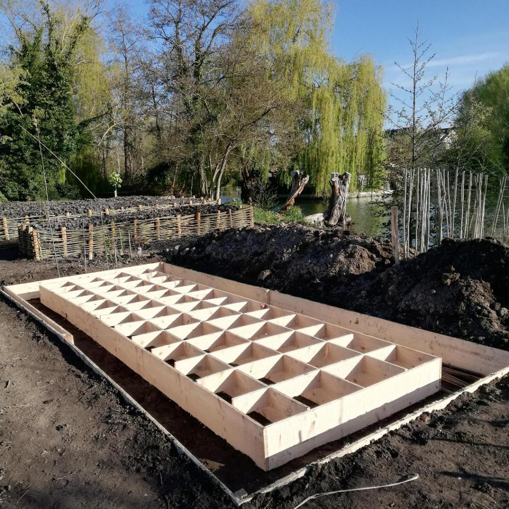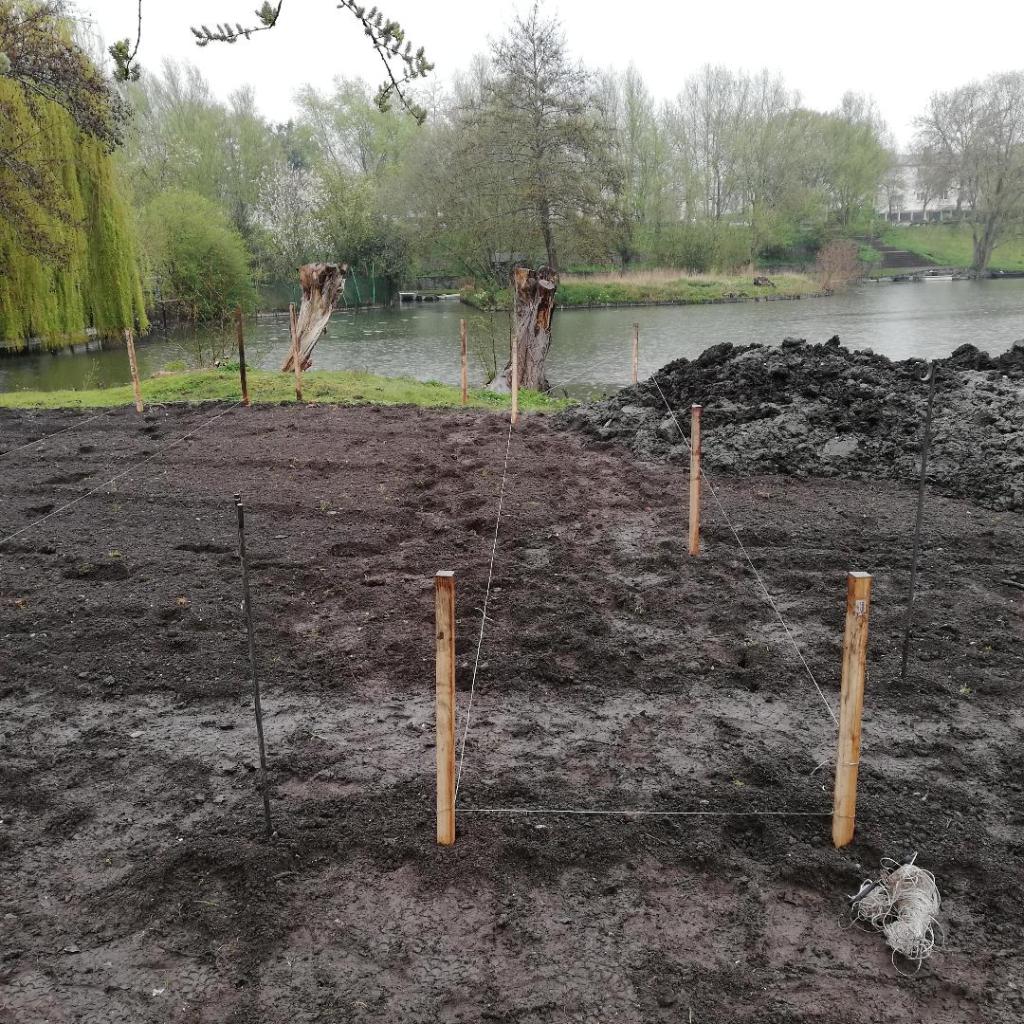 Insérer les assises aux buttes.Fleur de tabac.Recouvrement par le paillage pour préserver la terre et donner une unité aux différentes formes.Haie de saule, au-delà de la terre.Vue depuis le sud-est de l’île.Fin avril, les gelées sont encore là, les plantes sont protégées en attendant les beaux jours.Mise en place des panneaux explicatifs pour les 4 jardins.Vue depuis le nord de l’île.Vue depuis le nord-ouest de l’île.La bande fleurie pousse.L’île vous attend et Elever la terre également.
